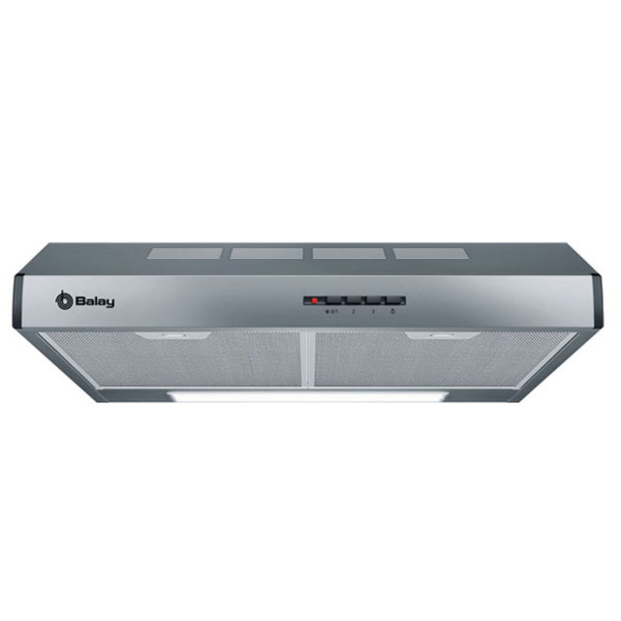 Balay 3BH263MX. Puissance d'extraction maximum: 350 m³/h, Type d'extraction: Conduit / Recirculation, Classe d'efficacité dynamique du fluide: E. Type: Encastrée, Couleur du produit: Acier inoxydable, Puissance de l'ampoule: 4 W. Type de filtre à graisse: Aluminium. Classe d'efficacité énergétique: D, Puissance du moteur: 138 W, Consommation annuelle d'énergie: 93,6 kWh. Largeur: 600 mm, Profondeur: 482 mm, Hauteur: 150 mm