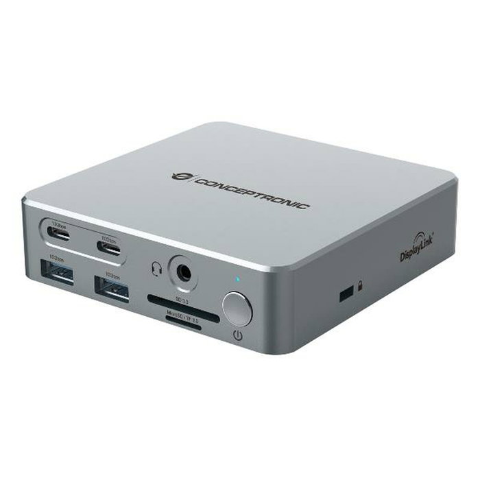 Le Conceptronic DONN25G 15-en-1 DisplayLink USB 3.2 Gen 2 Docking Station est une station d’accueil multifonction avancée conçue pour étendre la connectivité des ordinateurs portables et de bureau modernes via un seul port USB. Ce hub USB intègre une large gamme de ports essentiels, dont deux ports USB-A 5 Gbps et deux ports USB-A 10 Gbps, offrant des vitesses de transfert rapides et polyvalentes pour connecter des périphériques tels que disques durs externes, imprimantes ou dispositifs d’entrée avec grande efficacité. Il prend en charge USB 3.2 Gen 2, garantissant la compatibilité avec les dernières technologies de connexion et un débit élevé. Il dispose également d’interfaces réseau, avec un port Ethernet LAN RJ45 permettant des connexions filaires à des réseaux haut débit, idéal pour les environnements professionnels où stabilité et rapidité d’internet sont indispensables. Pour la transmission audiovisuelle, il intègre un port HDMI 2.0 capable de supporter des résolutions 4K à 60 Hz, facilitant la connexion à des moniteurs externes haute définition pour étendre l’espace de travail ou profiter de contenus multimédias en qualité supérieure. Il comprend aussi une entrée audio via un connecteur Jack 3,5 mm pour casques ou microphones, assurant une compatibilité complète avec les appareils audio. Cet équipement se distingue par sa polyvalence en regroupant toutes ces connexions essentielles dans un seul appareil, réduisant le câblage et simplifiant la gestion des périphériques, tout en offrant un design compact et une efficacité dans le transfert des données et signaux. La combinaison de ports USB aux débits variés et l’intégration du standard DisplayLink garantissent des performances optimales en environnements professionnels comme personnels pour les utilisateurs nécessitant plusieurs connexions simultanées. En résumé, cette station d’accueil Conceptronic représente une solution complète pour étendre les capacités de connexion de votre ordinateur avec des technologies actuelles et un large éventail de ports intégrés.
