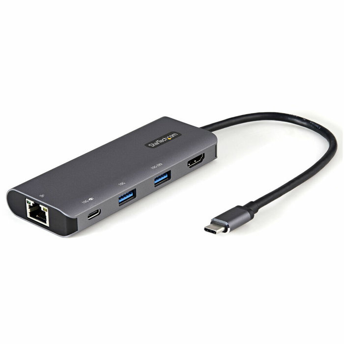 Le Startech DKT31CHPDL est un hub USB multifonction compact et robuste qui transforme tout ordinateur portable doté d’un port USB-C ou Thunderbolt 3 en une véritable station de travail portable. Cet adaptateur multiprises offre une alimentation USB Power Delivery 3.0 jusqu’à 100 W, permettant de charger l’ordinateur et ses périphériques via une connexion unique, efficace et sécurisée. Il intègre un ensemble complet de ports comprenant un port HDMI 4K avec une résolution maximale de 3840 x 2160 pixels, idéal pour connecter des moniteurs ou écrans externes en Ultra HD, ainsi qu’un port USB-C pour transfert de données et alimentation, et deux ports USB 3.2 Gen 2 Type-A assurant des vitesses jusqu’à 10 Gbps, facilitant la connexion de périphériques USB modernes et classiques. Pour garantir une connexion réseau stable et rapide, il intègre un port Gigabit Ethernet supportant des vitesses jusqu’à 1000 Mbit/s, parfait pour les bureaux ou environnements câblés nécessitant une fiabilité maximale. Ce hub présente un design élégant noir et gris, avec un câble intégré de 25 cm offrant une plus grande flexibilité dans l’organisation de l’espace de travail. Il est compatible avec Windows (de Windows 10 à Windows Server 2016) et Mac OS X (de Sierra à Catalina), assurant une intégration polyvalente avec plusieurs systèmes. Il est également accompagné de l’application Connectivity Tools de StarTech.com, qui permet de gérer des configurations personnalisées, renforcer la sécurité réseau via le filtrage d’adresses MAC, surveiller les événements USB et faciliter le basculement automatique entre connexions Wi-Fi et LAN filaire. Grâce à son format portable et sa gamme complète de ports, ce mini dock USB-C est conçu pour les professionnels souhaitant étendre les capacités de leur portable en mobilité ou dans des environnements de travail flexibles, améliorant la productivité sans sacrifier espace ni performance. En résumé, le Startech DKT31CHPDL est une solution de connectivité complète et avancée pour les utilisateurs exigeants recherchant polyvalence, rapidité et efficacité dans un seul appareil.