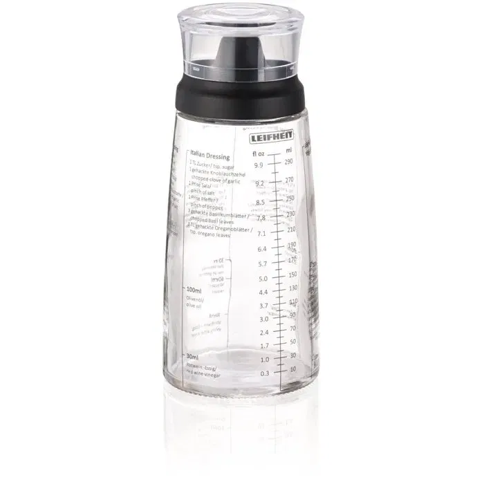 Leifheit 3195 Shaker à Vinaigrette Gradué 300 ml avec Bec Verseur Anti-Goutte, 5 Recettes Incluses pour Salades