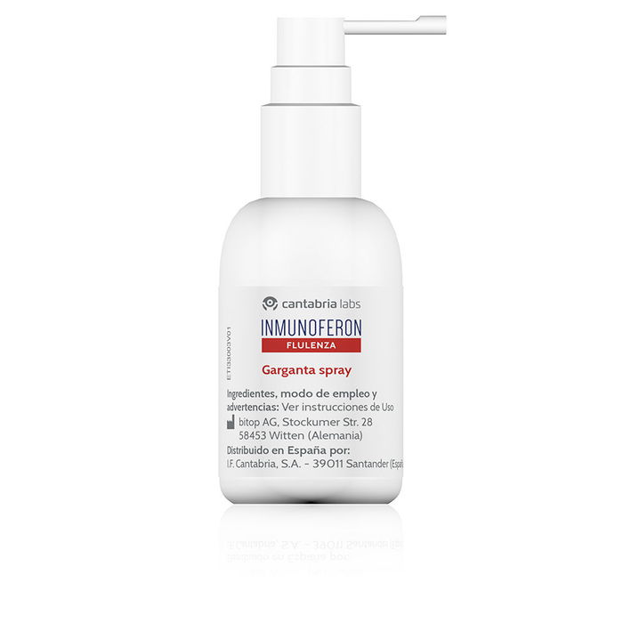 Le spray INMUNOFERON FLULENZA pour la gorge est un dispositif médical développé par INMUNOFERON, conçu pour atténuer les signes de pharyngite, laryngite et amygdalite aiguës. Son efficacité repose sur la technologie brevetée ECTOIN®. Il soulage la sécheresse et l'irritation des muqueuses buccales et pharyngées, réduisant ainsi les troubles liés à la pharyngite ou la laryngite aiguë tels que les maux de gorge, les changements de voix, la toux et la douleur lors de la déglutition. Il contribue également à apaiser l'inflammation des muqueuses de la bouche et de la gorge. Conforme aux régulations en vigueur pour les dispositifs médicaux.