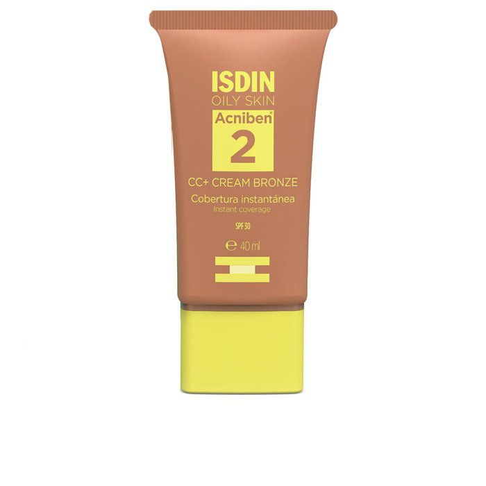 Isdin - Crème CC ACNIBEN, couvrance instantanée avec SPF30 #Bronze, 40 ml - Soin teinté unisexe camouflant imperfections et brillance