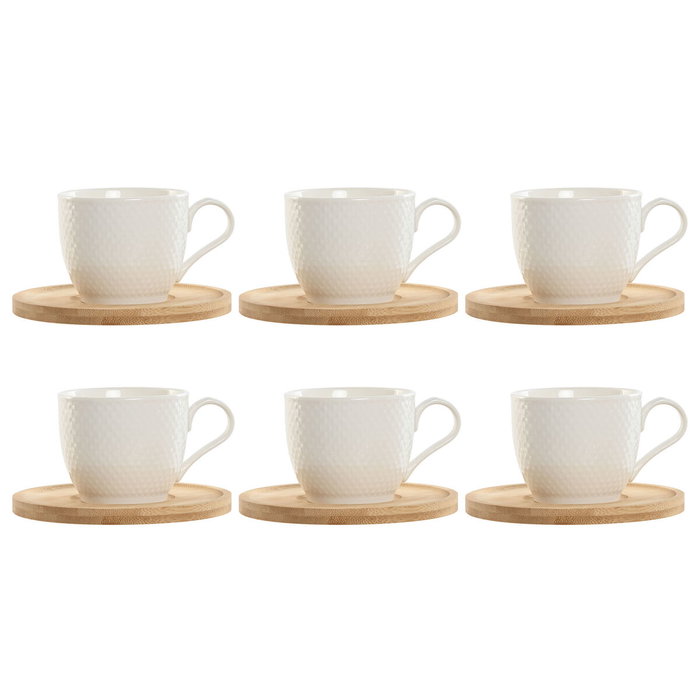 Jeu de 6 tasses avec plat Home ESPRIT Blanc Naturel Bambou Porcelaine 220 ml