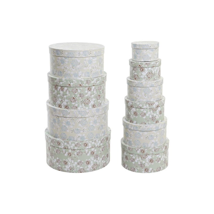 Jeu de Caisses de Rangement Empilables DKD Home Decor Beige Vert Carton (37,5 x 37,5 x 18 cm)