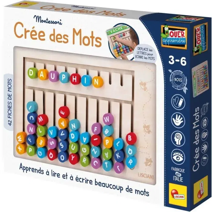 Découvrez le jeu éducatif MONTESSORI COMPOSE-MOTS, un tableau en bois avec lettres et chiffres magnétiques. Idéal pour les enfants de 3 a 6 ans, il favorise l'apprentissage ludique de la lecture et de l'écriture tout en développant la motricité fine et la créativité.