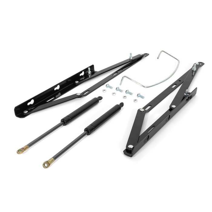 Jeu de deux charnières de canapé à ressort à gaz avec système de fixation par boulons filetés M8 et forces de 600 à 1250 Newtons. Ce système d'ouverture pour lits type canapé de la marque Q&Q offre une élévation douce et contrôlée. Le jeu intègre des pistons à gaz de forces différentes pour s'adapter au poids du sommier et du matelas.