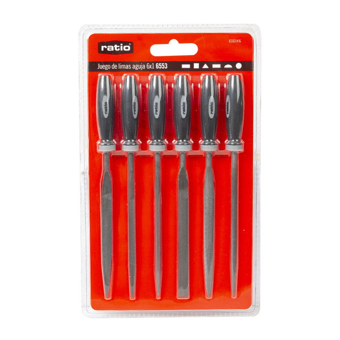 RATIO Jeu de 6 limes 160mm - Plates, pointues, carrées, triangulaires, demi-rondes et rondes pour métal