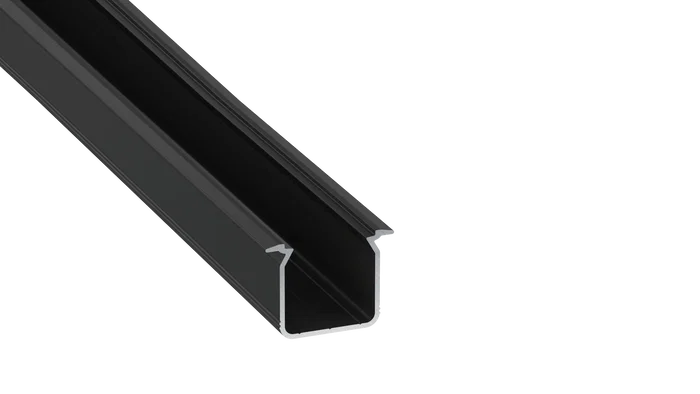 Profilé en aluminium KIMERA 'SKAGEN' anodisé noir, équipé d'un diffuseur opale, de capuchons d'extrémité et de clips de fixation. Longueur totale : 2.02 mètres.