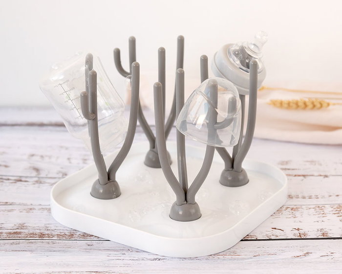 KioKids Egouttoir a biberons desmontable gris 16 x 21 x 21 cm - Support de sechage pour biberons et accessoires - Materiel plastique, lavable au lave-vaisselle, stable