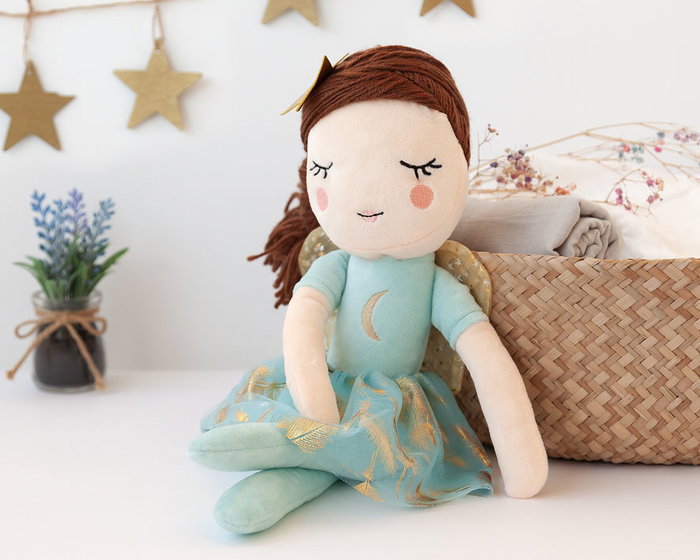 La poupée en tissu Fée des étoiles de KioKids est une amie céleste pour tout enfant. Vêtue d'une robe éblouissante, cette poupée est conçue pour inspirer l'imagination et favoriser le jeu créatif. Un ajout magique à la collection de jouets de tout enfant, qui promeut l'apprentissage par le jeu et la fantaisie.