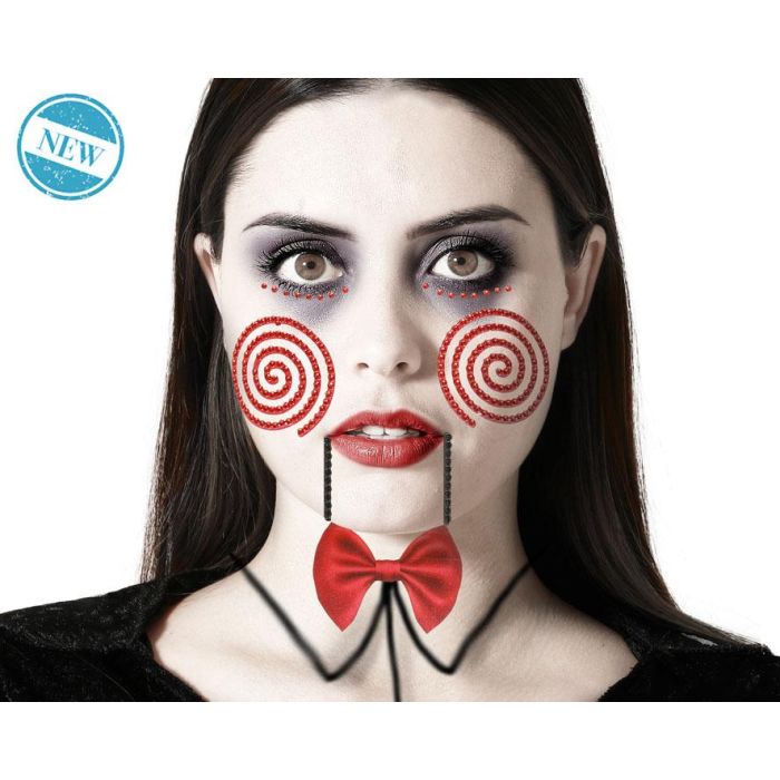 Transformez-vous en un personnage glaçant avec ces bijoux adhésifs style clown. Les spirales sur les joues et les détails sombres recréent un look troublant, idéal pour des déguisements de poupée diabolique ou des spectacles d'horreur. Parfait pour Halloween et les performances théâtrales.