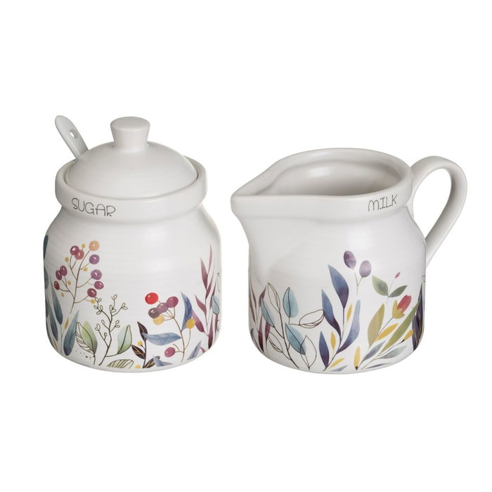 Laitière et sucrier BERRIES Blanc Rouge Vert Grès 250 ml 18,5 x 9 x 10 cm