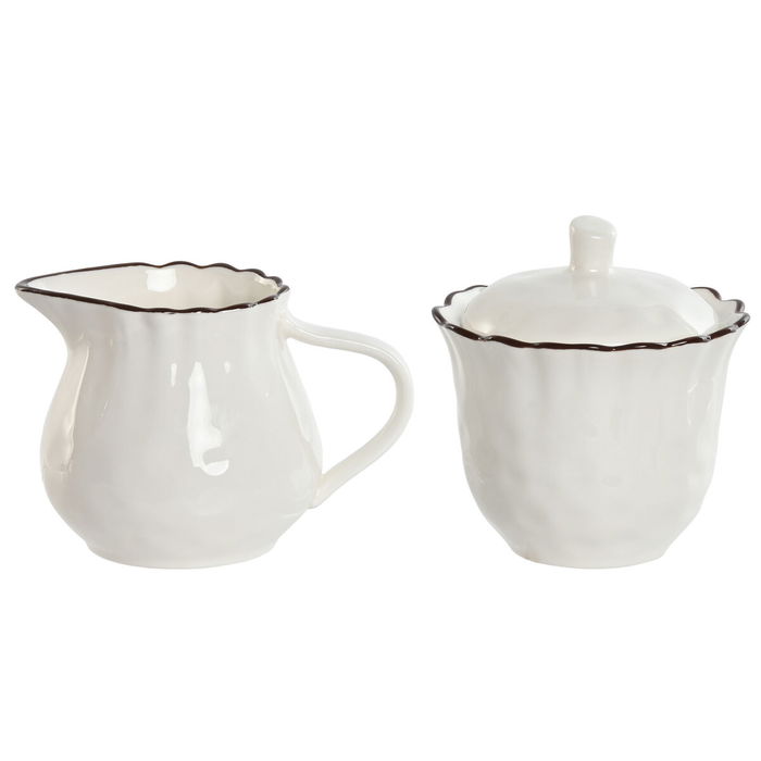Laitière et sucrier Home ESPRIT Blanc Marron Porcelaine 250 ml 12 x 8,4 x 8 cm 2 Pièces