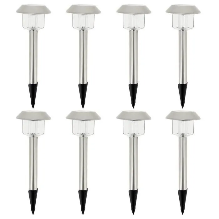 - Type de Produit: Lot de 8 balises solaires LED blanc froid - ALESIA - LUMISKY - Métal - Extérieur