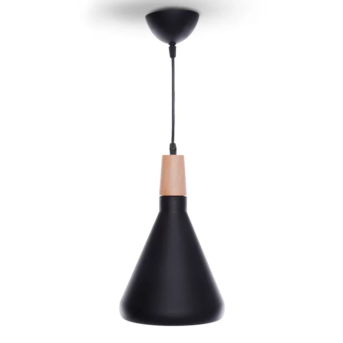 La lampe suspendue en métal et bois est un élément parfait pour apporter une touche de couleur à n'importe quel espace. Fabriquée en aluminium et en bois, elle présente un design simple, offrant une décoration moderne et décontractée selon nos goûts. La luminosité de la lampe dépend de l'ampoule que l'on y installe. Cela ouvre un grand éventail de possibilités puisque, par exemple, on peut utiliser des ampoules à filament pour un aspect plus rétro, ou opter pour une ampoule d'apparence plus contemporaine. L'essentiel est de choisir l'ampoule qui éclaire adéquatement l'espace en tenant compte de ses besoins en éclairage. Câble réglable en hauteur.