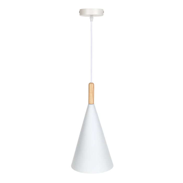 La Lámpara Colgante Metal y Madera es un elemento perfecto para dar un toque de color a cualquier espacio. Fabricada en aluminio y madera y cuenta con un diseño sencillo consiguiendo una decoración moderna y desenfadada a nuestro gusto. La luminosidad de la lámpara depende de la bombilla que le coloquemos. Esto nos abre una gran variedad de posibilidades ya que, por ejemplo, podemos utilizar lámparas de filamento, dándole un aspecto más retro, o utilizar una bombilla de aspecto más actual. Lo importante es elegir la bombilla que ilumine de forma adecuada el espacio teniendo en cuenta las necesidades lumínicas del mismo. Cable regulable en altura.