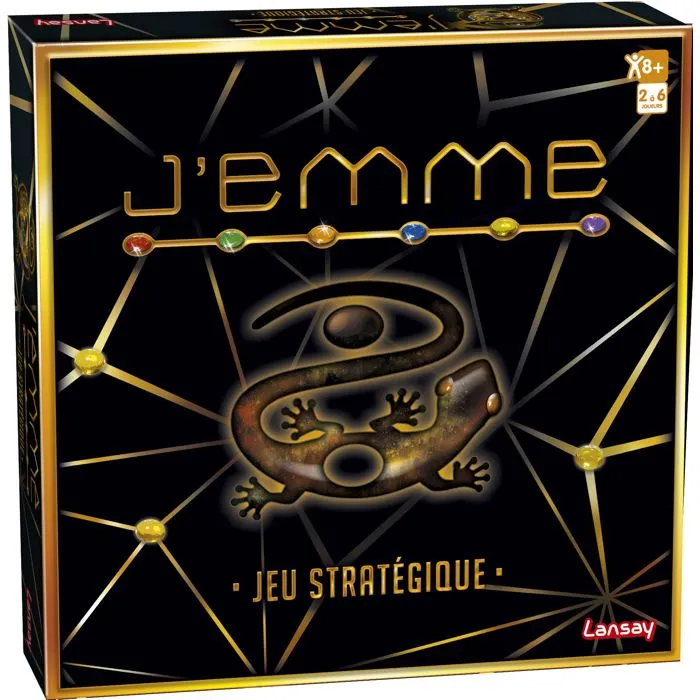- Description du produit: J'emme, jeu stratégique pour toute la famille ! Soyez le plus rapide à aligner vos gemmes et protégez-les avant de vous les faire gober ! Trahisons et alliances seront au rendez-vous Temps d'une partie : 20 minutes. De 2 à 6 joueurs. Dès 8 ans.