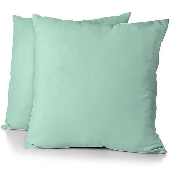 Lot de 2 taies d'oreiller - HOME LINGE PASSION - HP72084 - Microfibre 82 g - 63 x 63 cm - Vert d'eau