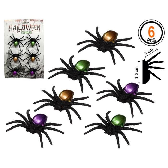 Lot de 6 Mini Araignées Décoratives Métalliques Multicolores de 7.5 cm pour Fête Halloween et Événements Thématiques