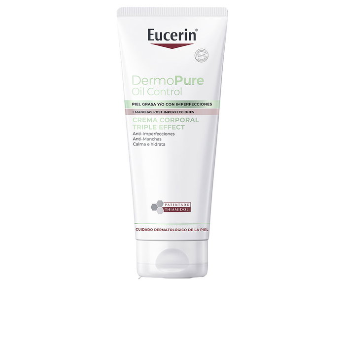 La Crème Corps Triple Effet Eucerin DermoPure est formulée pour traiter ces problèmes. Elle intègre des ingrédients performants visant à diminuer les imperfections et les cicatrices, tout en apaisant et hydratant la peau.