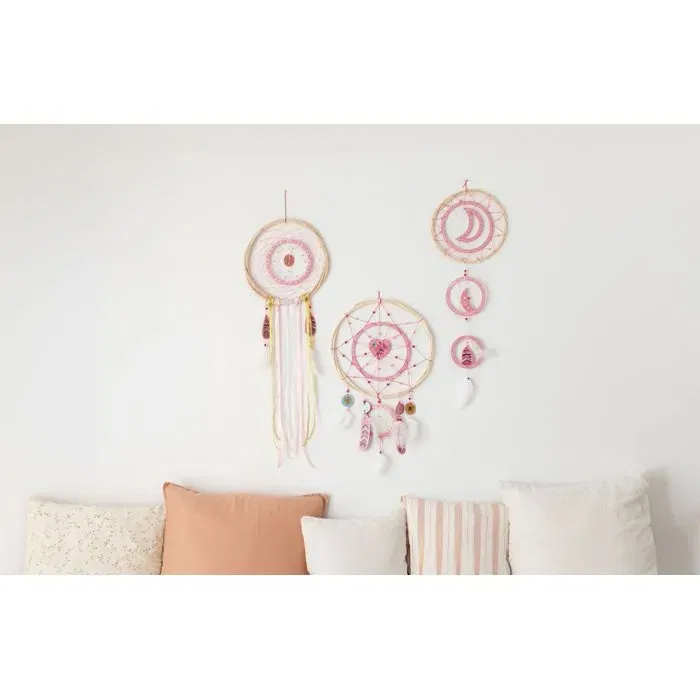- Modèles: 3 attrape-rêves géants à réaliser - Guide pas à pas inclus - Joli coffret à conserver pour ranger ou offrir ses créations