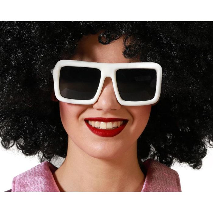 Lunettes carrées rétro en plastique blanc pour déguisement ou événement à thème années 70 - accessoire de fête