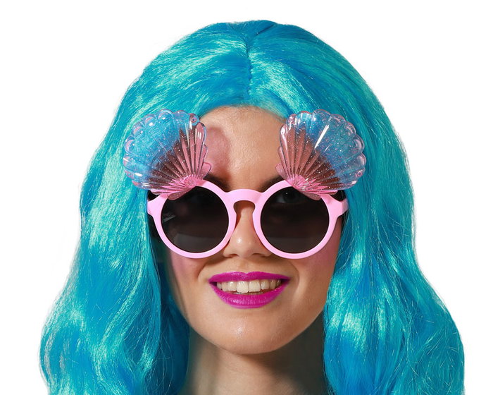 Complétez votre look aquatique avec ces lunettes aux tons roses et à la monture transparente ornée de coquillages scintillants.