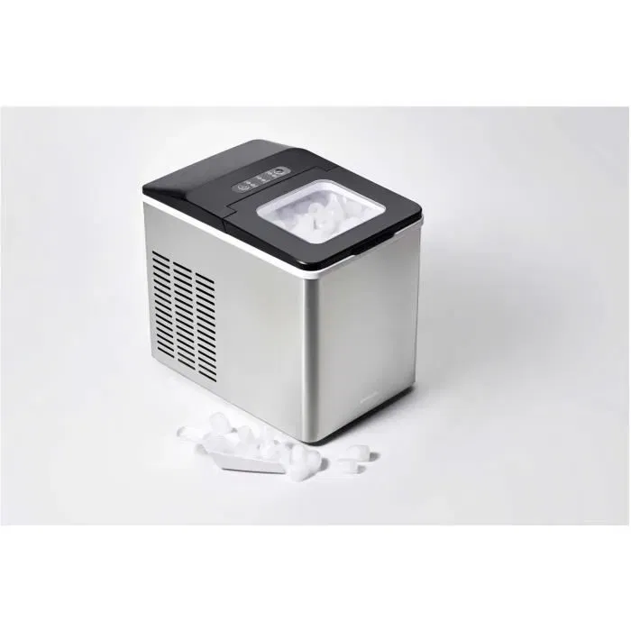 - Description du produit: Corps en acier inoxydable durable Fabrique jusqu’à 12 kg de glace par jour 9 morceaux de glaçons en forme de balle par cycle Un cycle en seulement 7 à 15 minutes Panier à glaçons pour 500 g de glace Couvercle transparent Fonctionnement à un bouton Fonction d’arrêt automatique Capacité du réservoir d’eau 1,8 l Fonction de nettoyage Fonctionnement silencieux Vanne de vidange du réservoir d’eau Puissance : 150 W Machine à glaçons compacte et élégante pour petite cuisine avec corps en acier inoxydable durable. Il suffit d’ajouter 1,8 l d’eau douce, d’appuyer sur le bouton et de déguster des glaçons en aussi peu que 7 à 15 minutes. Parfait pour les fêtes - produit jusqu’à 12 kg de glace par jour. Vous pouvez choisir parmi deux tailles de glaçons en forme de balle. Le fonctionnement silencieux vous permet de préparer 9 glaçons en un seul cycle et de les collecter dans un panier à glaçons jusqu’à 500 g. La fonction d’arrêt automatique garantit que la production de glace s’arrête lorsque le bac est plein ou que le récipient d’eau est vide. Surveillez la production de glace à travers le couvercle transparent. Pelle à glace pratique idéale pour remplir des seaux à glace ou stocker des glaçons. Facile à utiliser avec un seul bouton. La soupape de vidange permet de vider facilement le réservoir d’eau après la fin de la préparation de la glace. Contenu de l’emballage : Pelle à glace, Filtre amovible