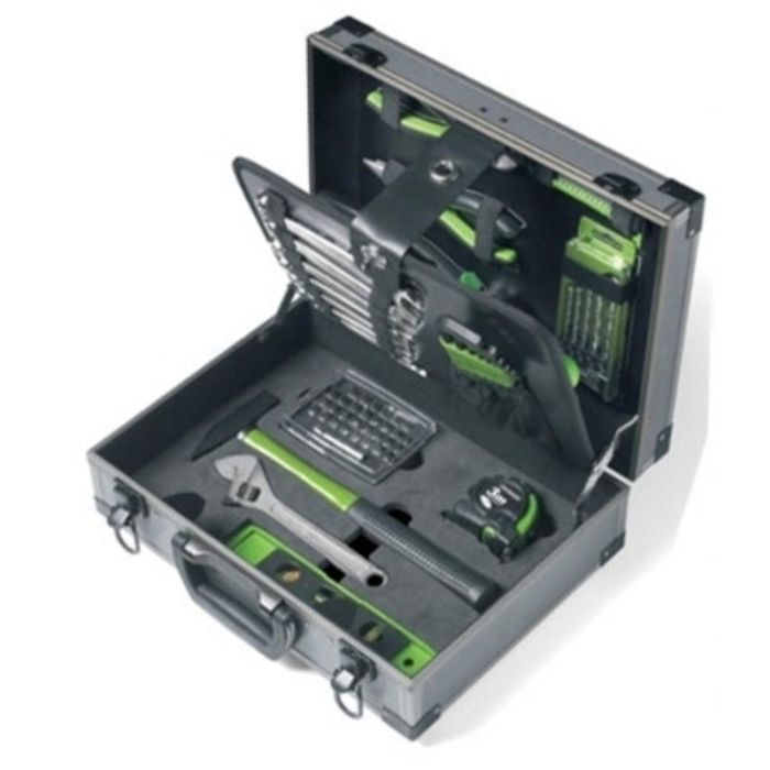 Todo este conjunto de herramientas manuales junto con sus accesorios, componen un maletín imprescindible en el ámbito del bricolaje a un precio muy económico. Contiene accesorios y herramientas muy comunes que pueden ser utilizados en un gran número de tareas.