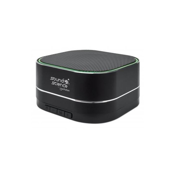 MANHATTAN Sound Science Metallic LED Bluetooth-Lautsprecher Bluetooth 5.0 Mikrofon Bedienelemente FM-Radio MicroSD-Slot schwarz