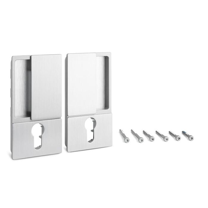 La versión WAVE para puerta corredera con cerradura para cilindro europeo combina diseño empotrado con un sistema de cierre seguro y funcional. Ideal para espacios donde se requiere privacidad o control de acceso, esta manilla se integra totalmente en la hoja de la puerta, sin elementos visibles ni salientes. Disponible en acabados cromo satinado, negro mate y blanco mate, aporta una estética continua y profesional a cualquier entorno.