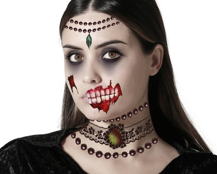 Maquillage Tatuaje Facial De Vampiresa Con Colgantes Y Dientes Ensangrentados - Kit maquillage effets sanglants pour Halloween et cosplay