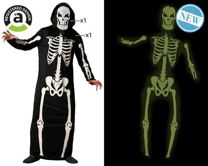 Marque Inconnue Déguisement Homme Adulte Squelette Fluorescent à Capuche, Effet Luminescent dans le Noir, Noir, Taille XL, pour Halloween et Fêtes