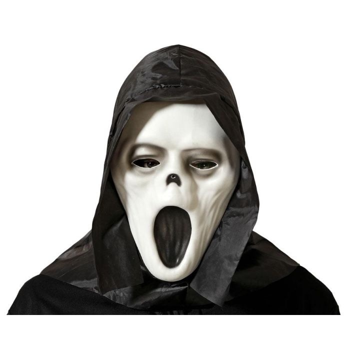 Masque Blanc d'Assassin avec Capuche en Polipropylène pour Halloween - Costume Fantôme Vengeur ou Tueur Silencieux