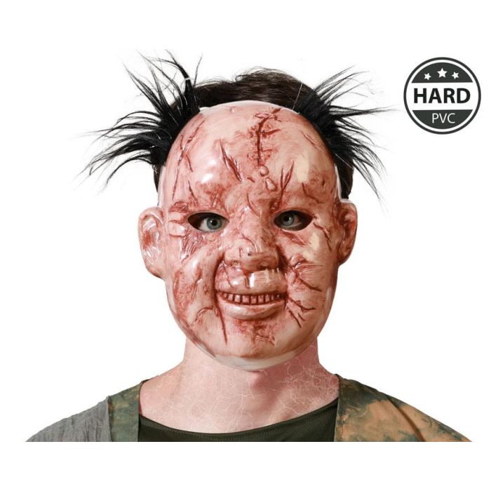Masque d'horreur de poupée déformée avec cicatrices et cheveux noirs, déguisement terrifiant pour Halloween, fêtes d'horreur ou costumes de film d'épouvante