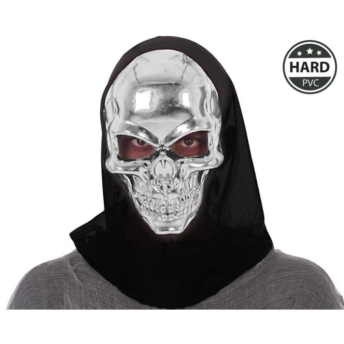 Masque de Fantôme Argenté avec Dents et Capuche pour Halloween - Déguisement Effrayant