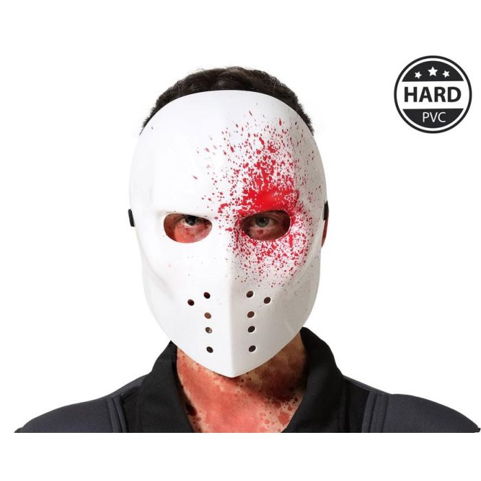 Masque de hockey blanc avec éclaboussures de sang - Accessoire Halloween déguisement et fête d'horreur
