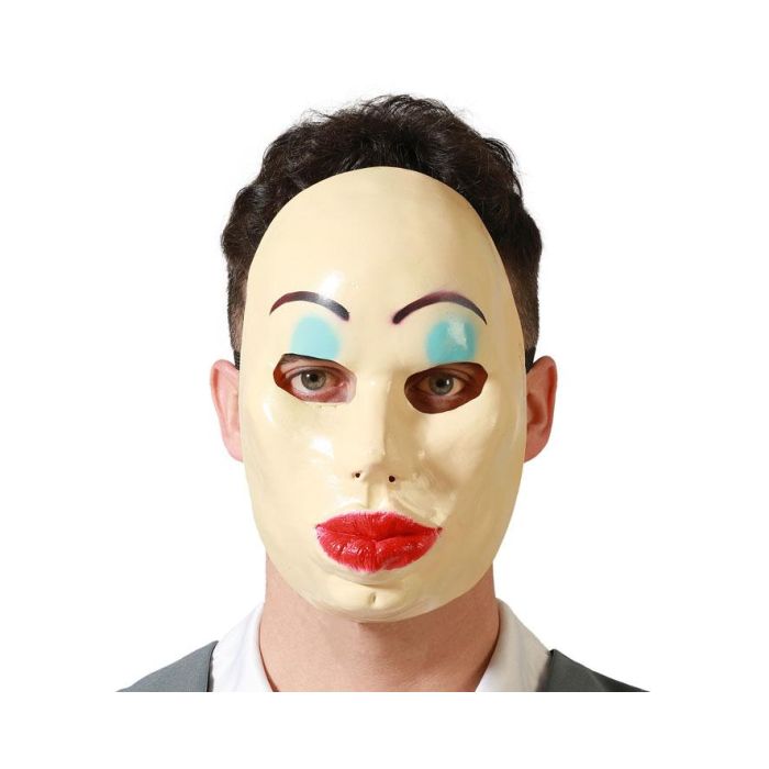 Masque de Visage Femme Plastique Maquillée Avec Lèvres Rouges - Accessoire Halloween ou Soirée à Thème Mascara