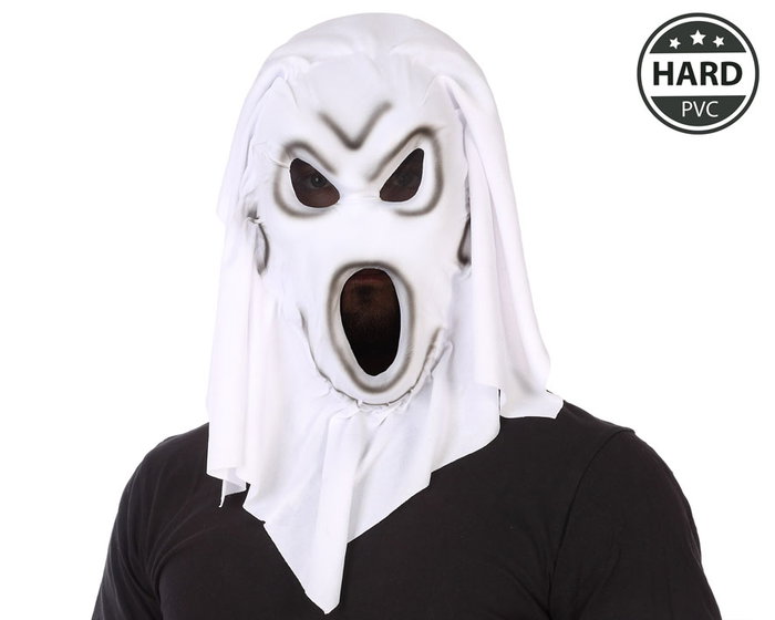 Masque Fantôme avec Capuche Noire et Détails en PVC Blanc - Décoration Blanche avec Larmes Noires et Sang - Accessoire Déguisement Adulte Halloween