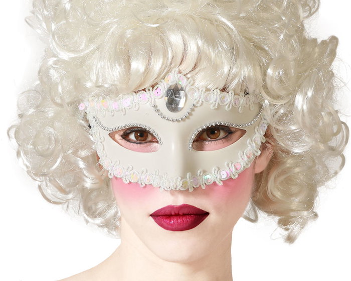 Masque Vénitien Antifaz Blanc Adulte Femme avec Paillettes - Pour Événements de Gala, Déguisements et Bals Costumés