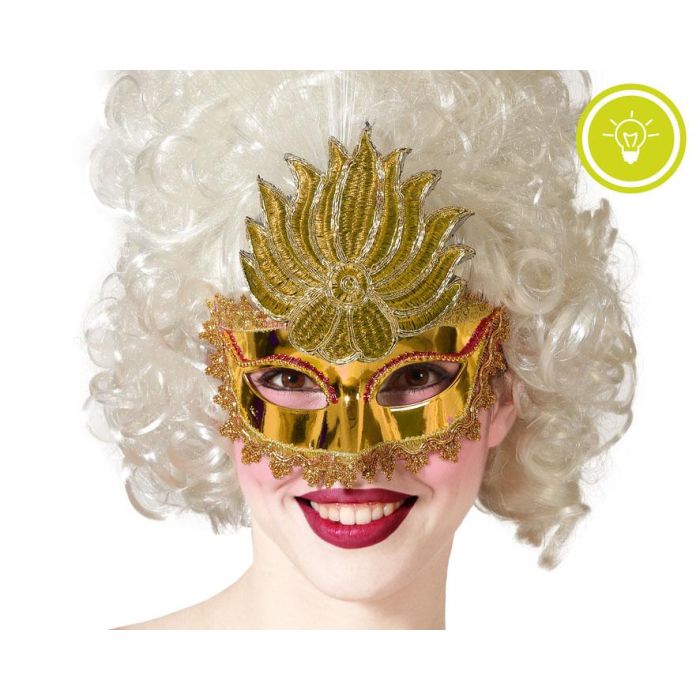 Masque Vénitien Antifaz Doré Brillant avec Plumes pour Femme Adulte - Mascara pour Fêtes, Galas et Événements