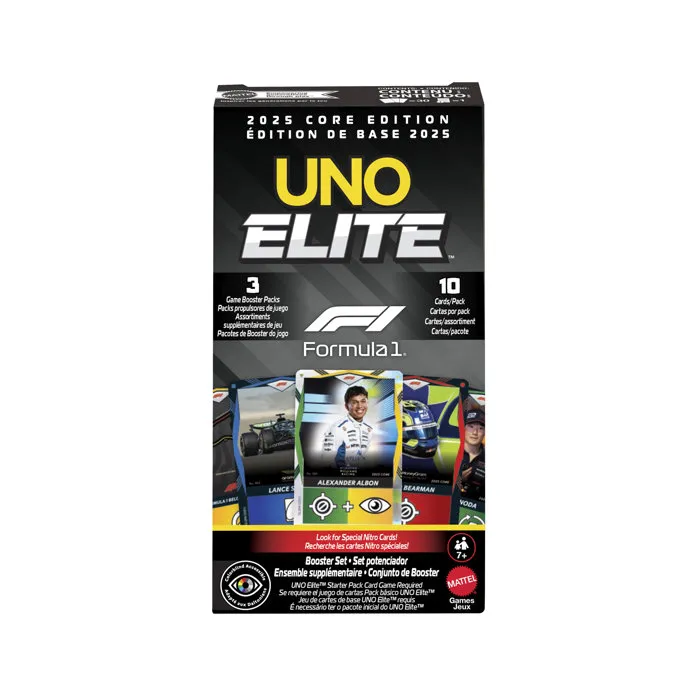 Des cartes UNO a collectionner et a jouer a l'effigie des 10 écuries de Formule 1 : pilotes, voitures ... Contenu : 3 boosters de 10 cartes Elite Action.