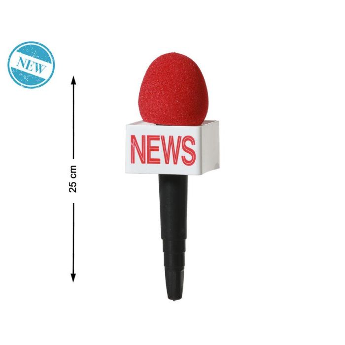 Microphone de jouet pour reporter 25 cm avec bonnette rouge et inscription 'news' - Accessoire déguisement
