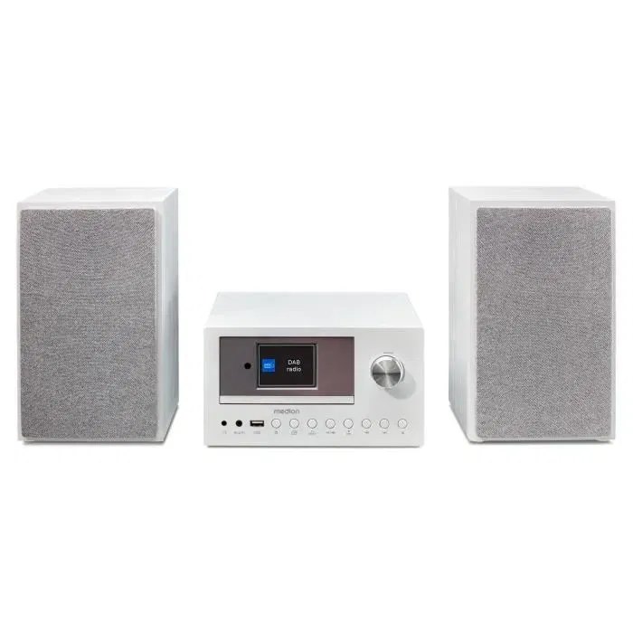 Medion - Mini Chaîne Hi-Fi avec Radio Internet DAB+/FM, Bluetooth 5.0, Lecteur CD, Port USB, WLAN, 2x15W RMS, Écran TFT 2,8", Blanc