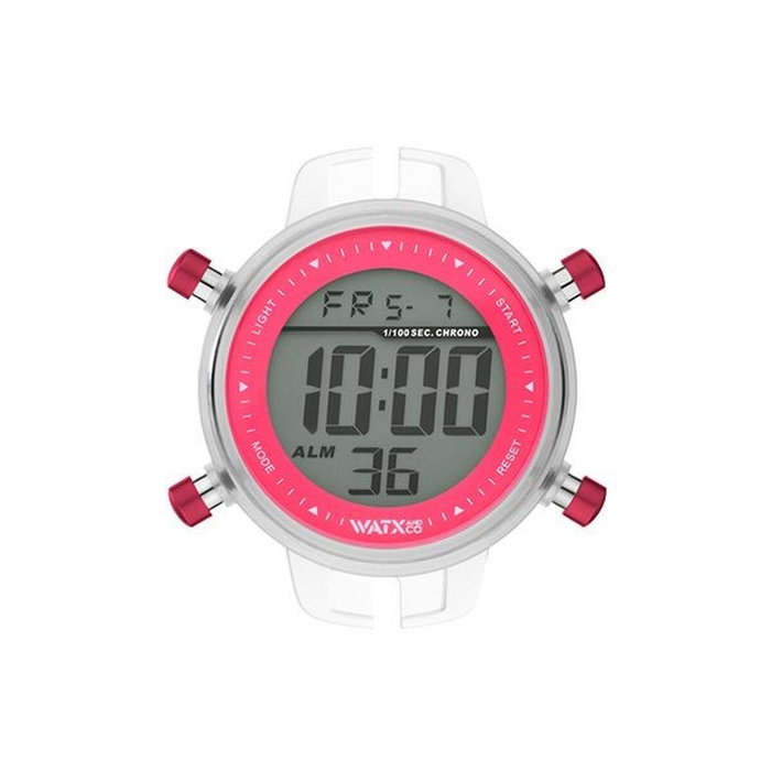 La Watx & Colors RWA1125 est une montre femme conçue pour celles qui recherchent un accessoire actuel et fonctionnel, avec une esthétique épurée et jeune. Elle présente un boîtier en silicone associé à des éléments en polycarbonate, des matériaux légers et résistants qui offrent confort au quotidien et bonne durabilité face aux chocs et rayures courants. Son design rose et transparent apporte un aspect moderne et polyvalent, facile à assortir aussi bien avec des tenues sportives que décontractées. La montre intègre un mouvement à quartz, reconnu pour sa précision et son faible entretien, garantissant une lecture de l’heure stable et fiable. Le cadran est protégé par un verre minéral, un verre durci qui offre une bonne résistance aux petites rayures et à l’usure de tous les jours. Avec un diamètre d’environ Ø 43 mm, elle offre une présence bien visible au poignet sans être excessive, facilitant la lecture de l’heure d’un coup d’œil. Son bracelet spécifique « Correa para reloj » en silicone s’adapte confortablement au poignet et convient à un usage prolongé, tout en étant facile à nettoyer et à entretenir. L’étanchéité de 5 ATM permet l’utilisation de la montre sous les éclaboussures, sous la pluie ou lors du lavage des mains, sans être destinée à la plongée ni aux activités aquatiques intensives. Dans l’ensemble, la Watx & Colors RWA1125 se présente comme une montre-bracelet femme pratique et actuelle, adaptée à un usage quotidien grâce à sa construction légère, son design rose et transparent et son fiable mouvement à quartz.