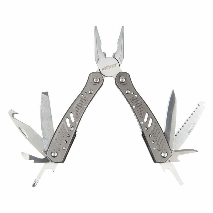 La multitool de la marque Wolfcraft est une option conçue aussi bien pour les professionnels que pour les particuliers recherchant polyvalence et robustesse dans un seul outil. Fabriquée en métal, cette multitool possède une structure résistante capable de supporter des conditions d’utilisation intensives, garantissant ainsi durabilité et fiabilité sur le long terme. Sa combinaison élégante de finitions en noir et métal offre non seulement un aspect professionnel, mais aussi une meilleure visibilité et facilité de repérage parmi d’autres outils. Elle intègre 13 outils, permettant de s’adapter efficacement à diverses situations, des réparations rapides aux projets plus complexes, tout en optimisant l’espace et le temps de travail. Cet ensemble multifonction est idéal pour les tâches de bricolage, l’entretien et les ajustements rapides, offrant des solutions pratiques dans un seul appareil compact. Elle est livrée avec un étui conçu pour faciliter le transport et protéger l’outil contre les chocs ou dommages accidentels, assurant que toutes les fonctions restent accessibles et sécurisées. La multitool Wolfcraft répond aux besoins de ceux qui apprécient la praticité, la solidité et la grande fonctionnalité à chaque intervention, s’imposant comme un instrument indispensable dans tout équipement professionnel ou kit domestique.
