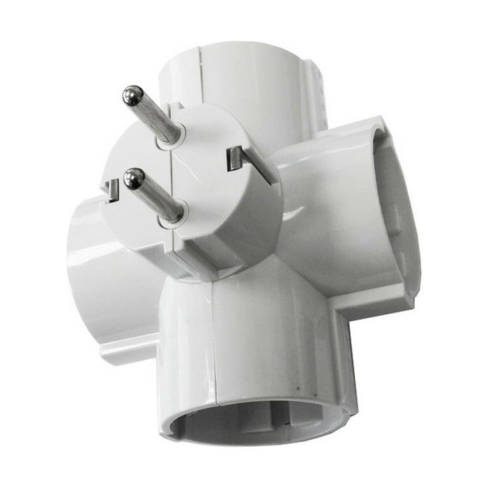 El ladrón de enchufe EDM Product es un adaptador diseñado para ampliar la capacidad de conexión eléctrica mediante un sistema cuádruple, permitiendo conectar hasta cuatro dispositivos en un solo punto de corriente que utilice un tipo de enchufe EU o tipo F. Fabricado en termoplástico blanco, ofrece una solución robusta y con acabado limpio que se integra fácilmente en cualquier entorno doméstico o de oficina. Este adaptador soporta un voltaje de 230 V y un amperaje máximo de 16 A, características que garantizan un uso seguro y adecuado para la mayoría de aparatos eléctricos estándar sin riesgo de sobrecarga, manteniendo la estabilidad y eficiencia energética. Su diseño incorpora una entrada lateral para facilitar la conexión en espacios reducidos o ubicaciones donde el acceso frontal sea complicado, optimizando la ergonomía y usabilidad. La configuración de 2 polos más toma de tierra (2p+t) asegura la protección adecuada contra descargas eléctricas, cumpliendo con las normativas vigentes para dispositivos eléctricos en zonas que utilizan el estándar europeo. Su forma compacta y construcción resistente hacen de este ladrón una práctica y funcional alternativa para gestionar múltiples puntos de alimentación eléctrica sin necesidad de recurrir a múltiples enchufes independientes. En conjunto, este adaptador cuádruple se posiciona como una solución técnica eficaz y segura para ampliar las conexiones de corriente en instalaciones domiciliarias o profesionales que requieran un rendimiento estable y organizado.