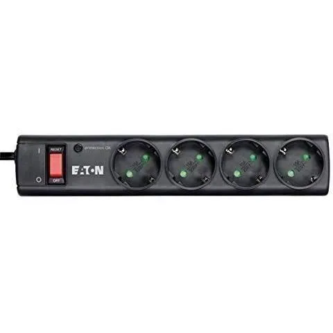 Eaton PS4D Multiprise Parafoudre avec 4 Prises DIN Européennes, Noir, 2500W, Protection 15000A, Garantie 2 ans