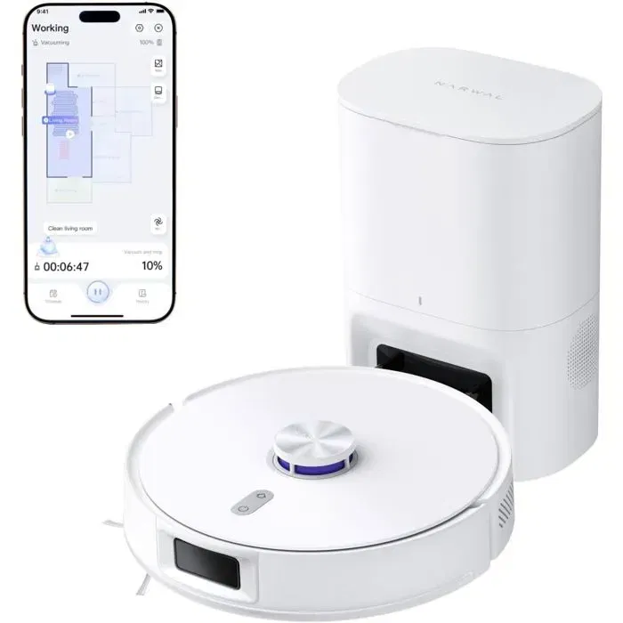 Narwal Freo S : votre premier pas vers une maison intelligente. Compact et performant, il offre une aspiration puissante de 8 000 Pa et un taux d'élimination de poussiere = 99 %. Sa serpilliere a pression constante (8 N) et son contrôle intelligent de l'eau assurent un nettoyage en profondeur en un seul passage. Navigation LiDAR LDS et détection d'obstacles millimétrique pour une couverture optimale. Station de vidange automatique avec sac de 3,5 L pour 180 jours sans entretien. Idéal pour tous types de sols, avec 4 modes d'aspiration et commande vocale intégrée.