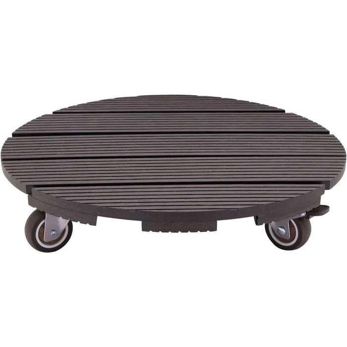 Nature - Support de pot à roulettes ronde en WPC anthracite, Ø38 cm x H8,6 cm avec 4 roues multidirectionnelles et frein, usage intérieur/extérieur